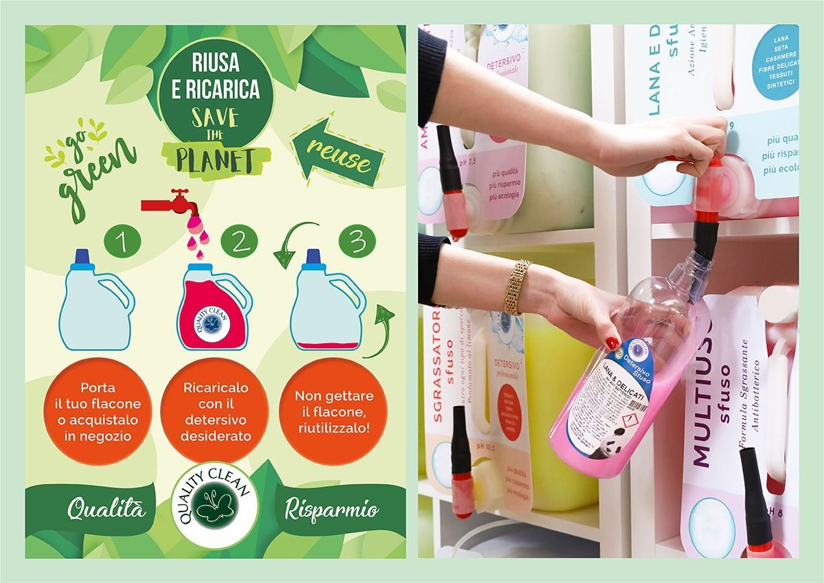 Detersivi sfusi per la pulizia della casa, pratici ed ecosostenibili. Una scelta responsabile che riduce gli sprechi, consente il riutilizzo dei contenitori e unisce convenienza, qualità e rispetto per l’ambiente.
